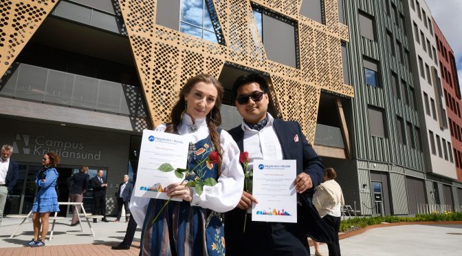 KRISTIANSUND (Panorama): Torsdag kunne auditoriet i nye Campus Kristiansund for førsre gang tas i bruk for høytidelig feiring av bachelor. Veien videre er variert for studentene: En skal rett i sommerjobb, mens en annen skal studere til master. Av ANDERS TØSSE Ikledd bunader, kjoler og fine dresser var studentene fra de tre studieretningene ved Høgskolen … Fortsett å lese Stolte logistikkstudenter med bachelorgrader er klare for fremtiden→